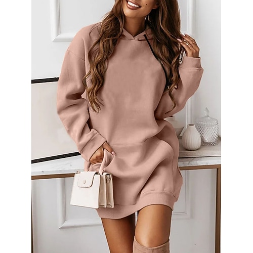 Per donna Mini Abito Abito con Cappuccio Vestito Casual Moda Moderno Quotidiano Ufficio Vacanza Vestibilità comoda Semplice Manica Lunga Con Cappuccio Rosa chiaro Nero Rosso Verde Primavera Autunno