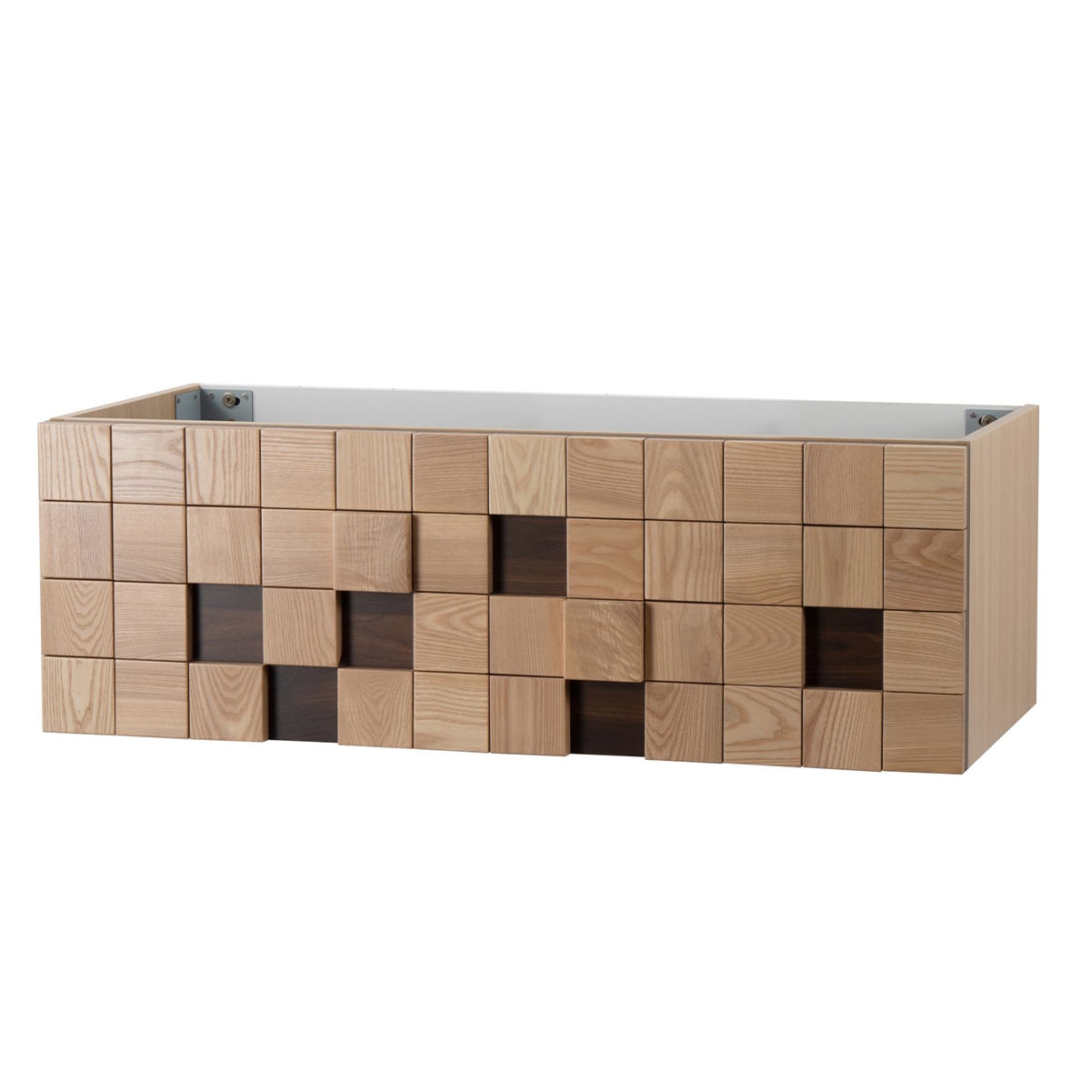 Belvit MOVEA Waschtischunterschrank 120cm 1 Schublade Grifflos Softclose Helle Eiche Blockmuster Multiplex Eschenfurnier