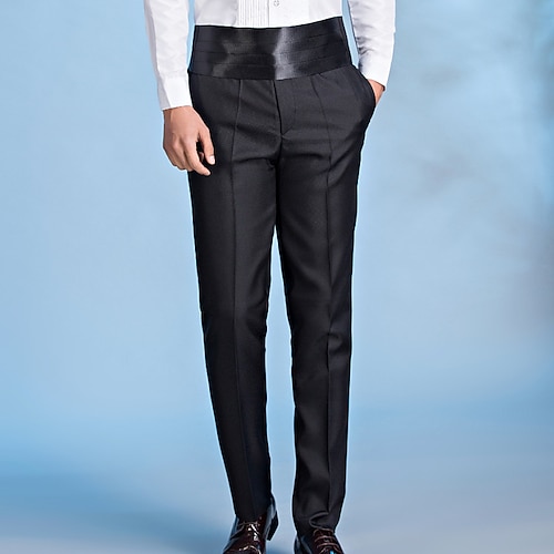 Uomo Feste Abiti da festa Bavero classico Nero Bianco Formale Tinta unita Vestibilità su misura 2 pezzi