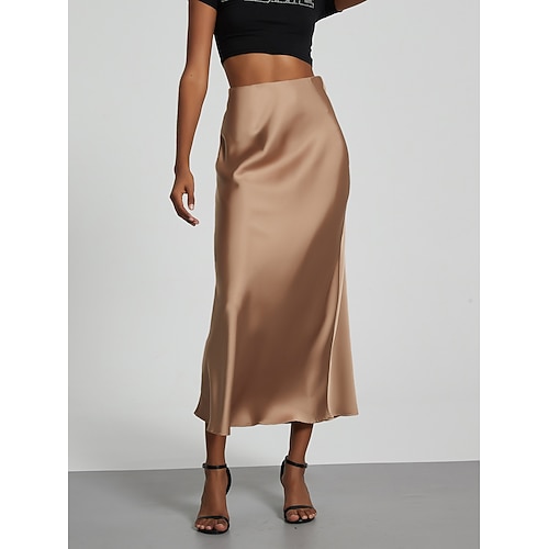 Per donna Gonna Aderente Elegante Moda Midi Vita Alta Gonne Semplice Micro-elastico Feste Streetwear Nero Vino Cachi Grigio scuro Primavera Raso Poliestere