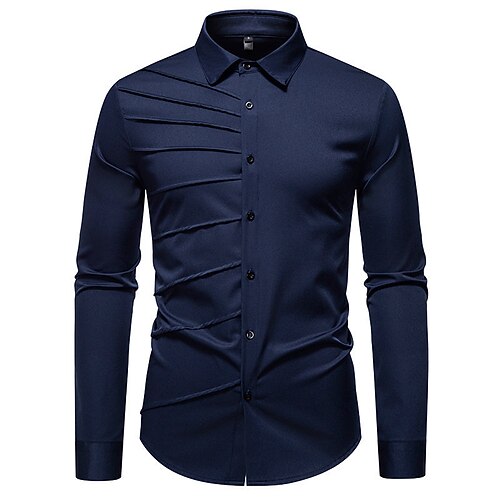 Per uomo Camicia Camicia elegante Camicia con Bottoni Semplice Matrimonio Feste Nero Bianco Vino Blu marino Manica Lunga Bavero Primavera Autunno Abbigliamento Patchwork