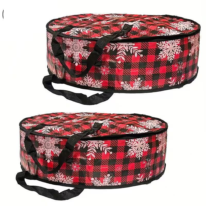 2PCS 24-Inch Christmas Wreath Storage Bag - Durable Canvas Material with Double Zipper Design and Sturdy Handle Snowflake Plaid Pattern Insect-Resistant Artificial Wreath Container Suitable for Home