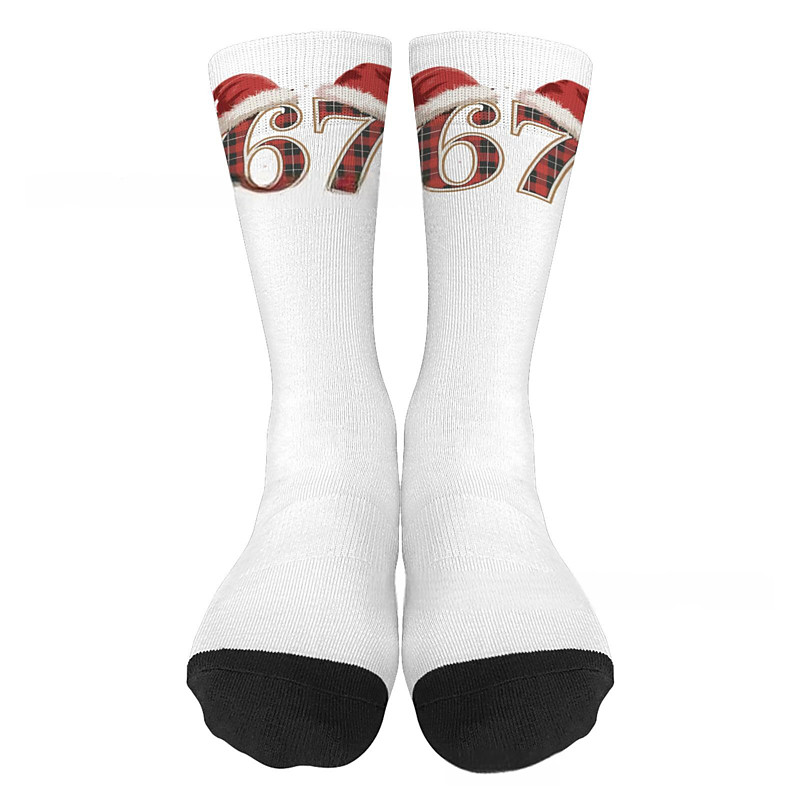 Fun Six Seven Meme Design Socks Creative 67 Pattern Novelty Casual Crew Socks with Soft Comfortable Fabric for Daily Wear Gift and Fashion Style