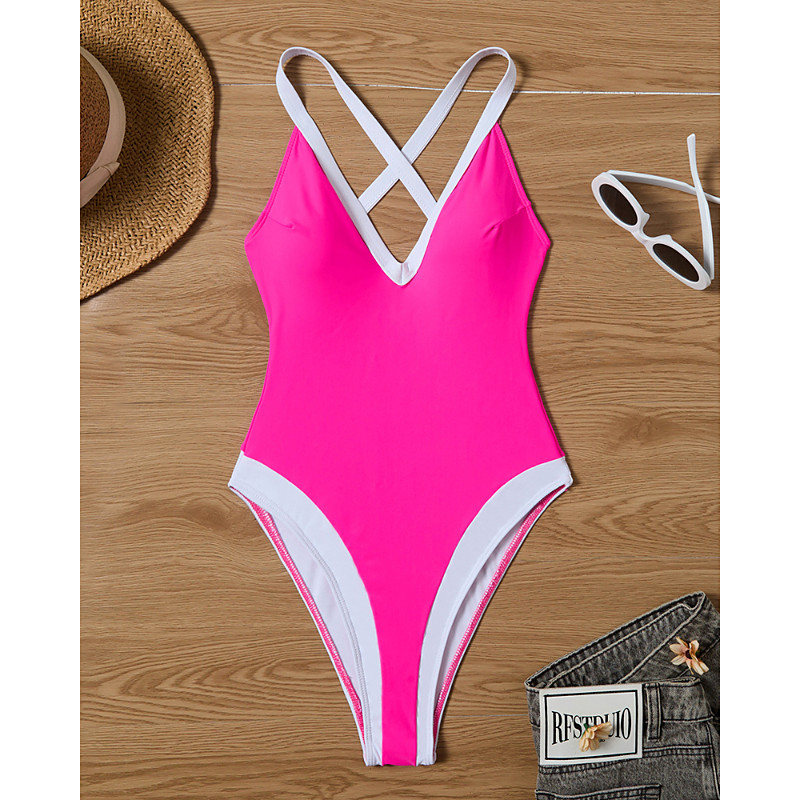 Women's Swimwear Bikini 2 Piece Cheeky Swimsuit Backless Slim Vacation Beach Wear Color Block V Neck Sleeveless Bathing Suits