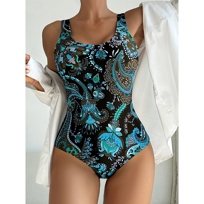 Women's One Piece Swimsuit Slimming Colorblock Monokini Tummy Control High Waist Slim Backless Vacation Beach Wear Graphic Geometic Round Neck Sleeveless Bathing Suits