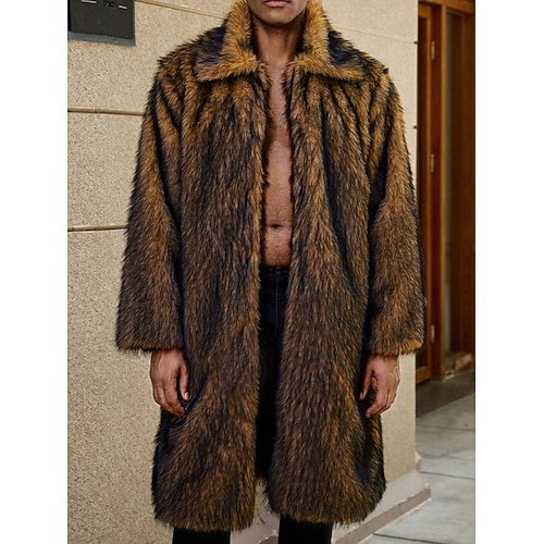 Per uomo Giacca Invernale Cappotto in Pelliccia Sintetica Vacanza Quotidiano Calore Termico Pile Autunno Inverno Semplice Moda Streetwear Bavero Lungo Nero Bianco Giallo Cammello Marrone Giacca
