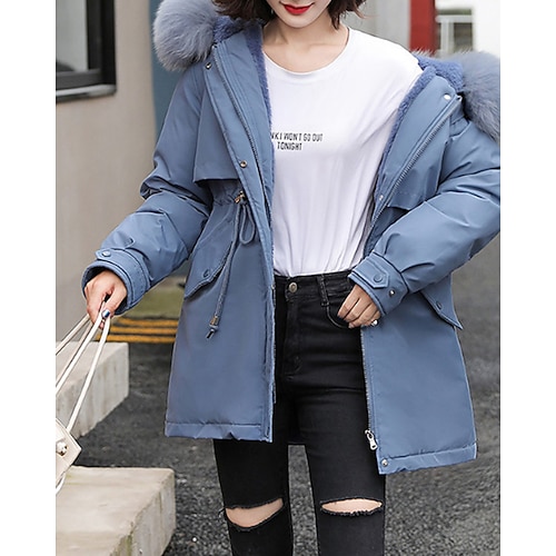 Per donna Giacca imbottita Giacca in Pile Cappotto in Pelliccia Sintetica Caldo Confortevole Bordo in pelliccia Cerniera Tasca Casual Semplice Vacanza Abbigliamento quotidiano Uscire Weekend Regolare