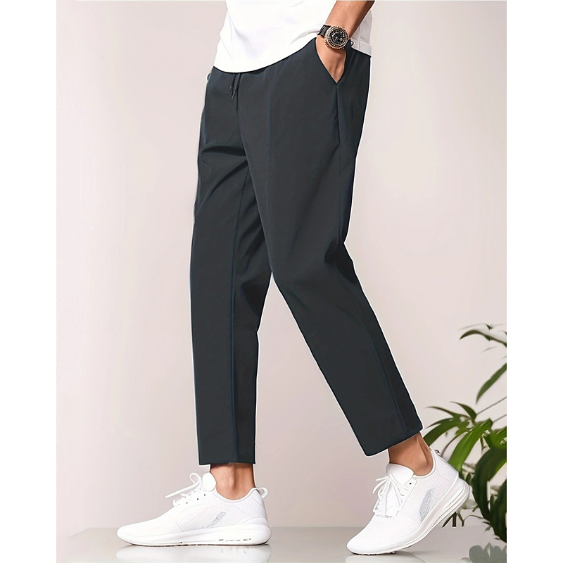 Men's Skinny Trousers Casual Pants Pocket Elastic Waist Drawstring Plain Comfort Ankle-Length Sports Outdoor Daily Fashion Casual Black Navy Blue Micro-elastic