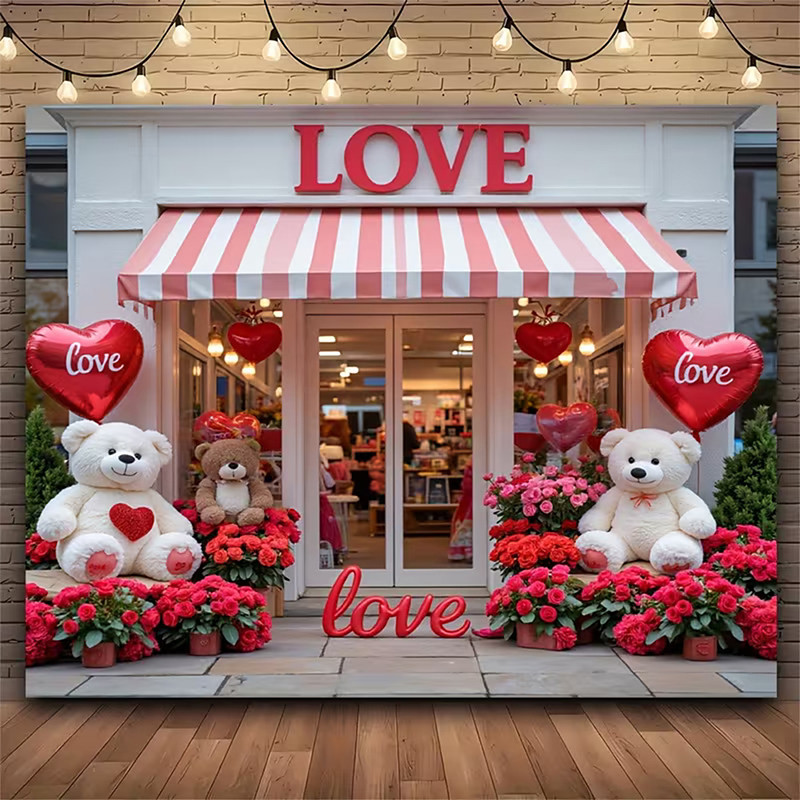 Valentine's Day Tapestry Banners Blanket Rose Little Bear Love Heart Cute Romantic 3D Party Living Room Shooting Backgrounds Marriage Proposal Decoration Home Decor