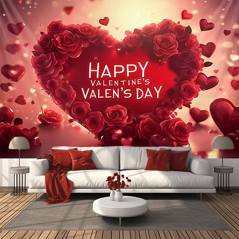 Valentine's Day Tapestry Banners Blanket Rose Love Heart Cute Romantic 3D Party Living Room Shooting Backgrounds Marriage Proposal Decoration Home Decor