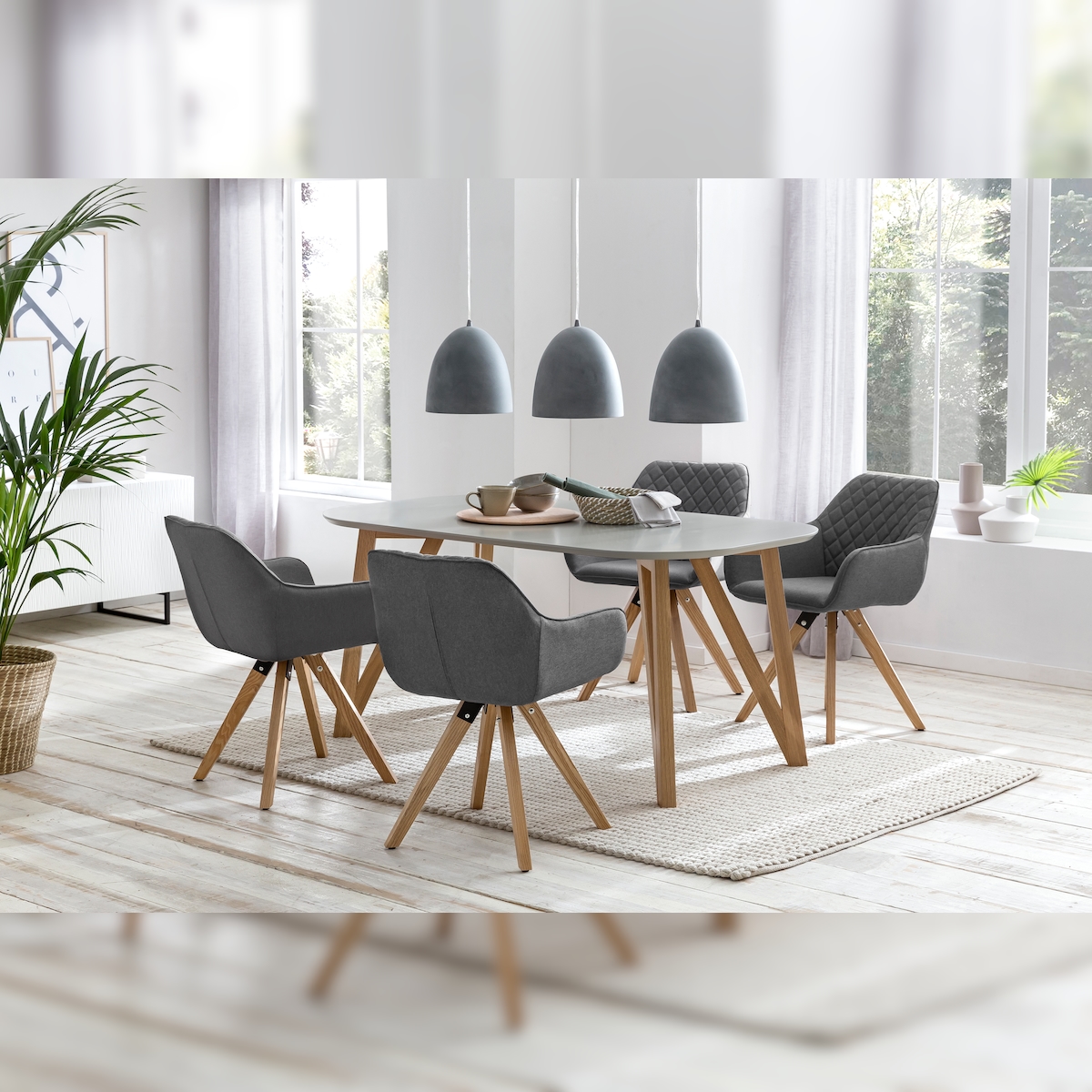 SalesFever Essgruppe 5-tlg. | 180 x 90 cm | Tischplatte grau + Gestell Eiche | 4x Stuhl Textil grau + Beine Eiche