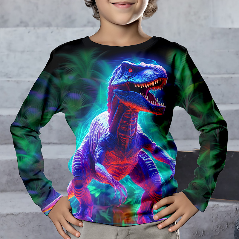 Boys 3D Dinosaur Tee Long Sleeve 3D Print Fall Winter Sports Fashion Streetwear Kids 3-12 Years Crew Neck Outdoor Casual Daily Regular Fit