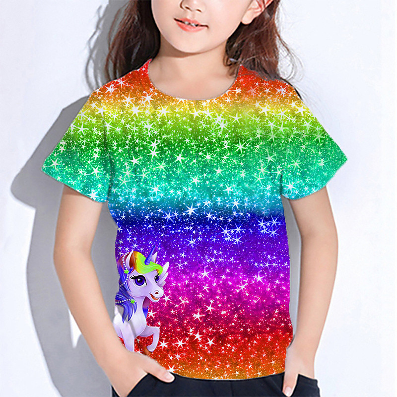 Girls' 3D Graphic Unicorn T shirt Tee Short Sleeve Summer Spring Fashion Basic Kids 4-12 Years Crew Neck Outdoor Casual Daily Regular Fit