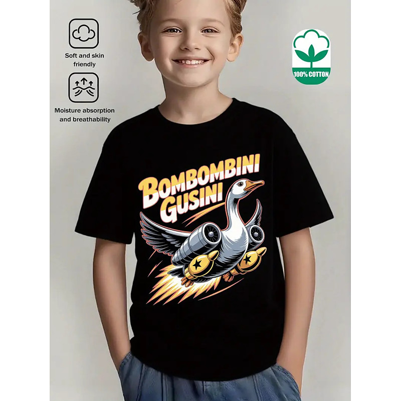 Cotton Kids Boys' Blue Black White Bombombini Gusini Graphic T shirt Blouse Crew Neck Short Sleeve Outdoor Dailywear Fashion Streetwear Designer Printing Summer