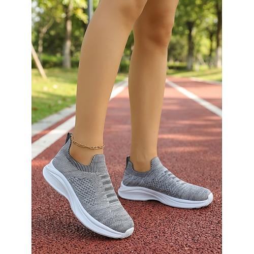scarpe da ginnastica slip-on viola da donna - tomaia in Flyknit traspirante, leggere scarpe sportive morbide in stile calzino per camminare, palestra, viaggi, uso quotidiano allenamenti casuali