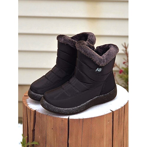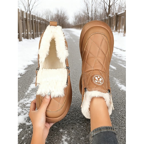 stivali da neve invernali caldi da donna con fodera in pelliccia sintetica e cerniera laterale, stivaletti antiscivolo impermeabili per l'uso all'aperto