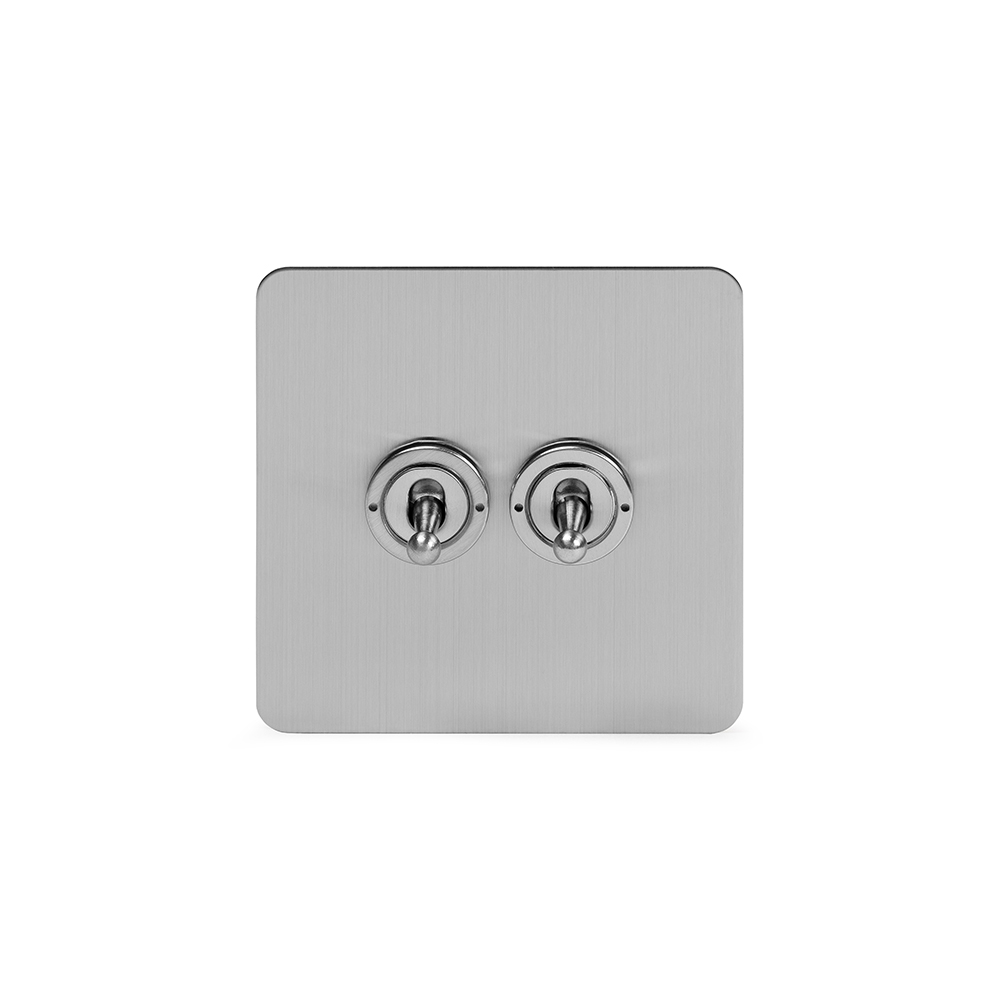 Soho Lighting Brushed Chrome Flat Plate 20A 2 Gang Intermediate Toggle Switch Screwless