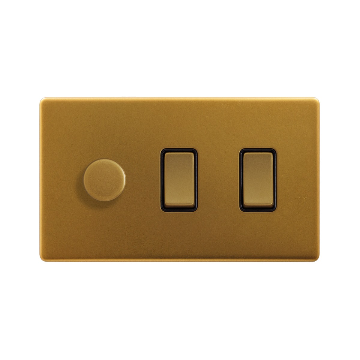 Soho Lighting Antique Gold 3 Gang Dimmer and Rocker Switch Combo (2-Way Intelligent Dimmer & 2 x 2-Way Light Switch)