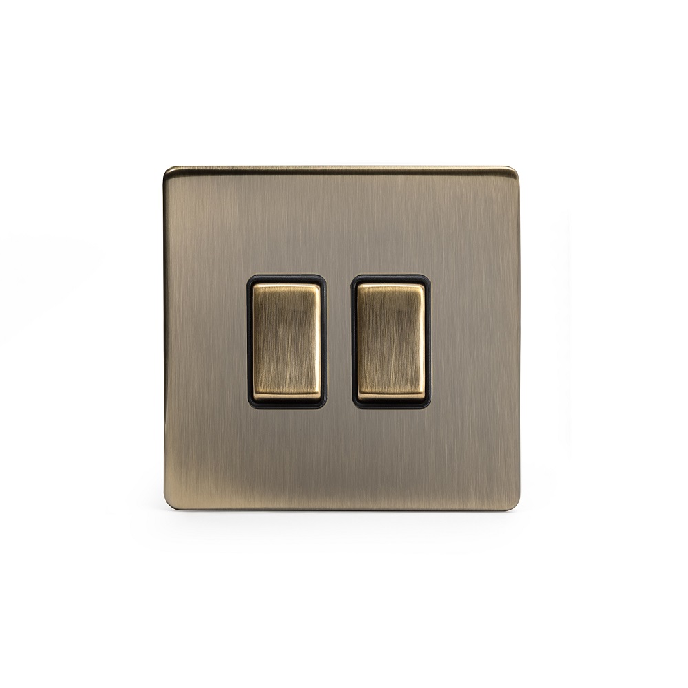 Soho Lighting Antique Brass 2 Gang Intermediate & 2 Way Switch Blk Ins Screwless - Size: H 86mm X W 146mm X D 4.5mm,