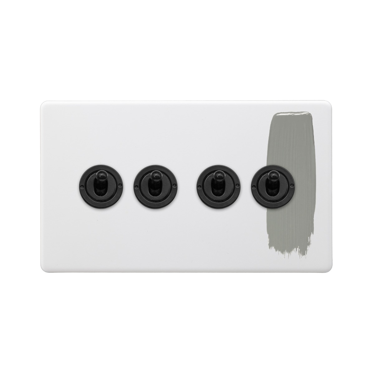 Soho Lighting Primed Paintable 4 Gang 2 Way Toggle Switch with Matt Black Switch - Size: 86mm x 146mm x 4.5mm