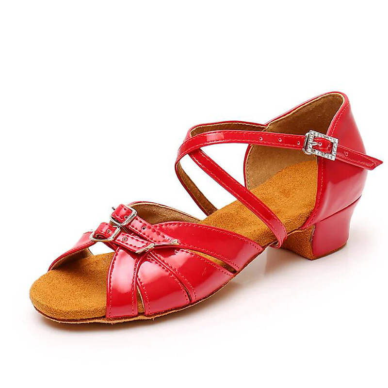 Women's Red Metallic Latin Dance Shoes - Professional Ballroom Salsa Tango Sandals with Strappy Design and High Heels for Competition or Performance