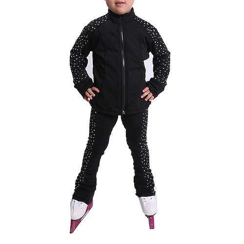 Eiskunstlaufjacke mit Hose Damen Mädchen Eislaufen Strumpfhosen Outfits Schwarz Hohe Elastizität Training Übung Professionell Eiskunstlaufkleidung Thermowarm Kristall / Strass Langarm Eislaufen