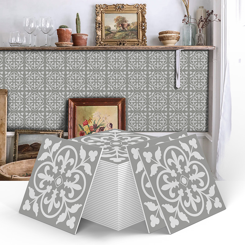 Vintage Self-Adhesive Tile Sticker Square Peel and Stick Non-Slip Waterproof Removable PVC Bathroom Kitchen Home Decor Floor Wall Stair Tile Sticker