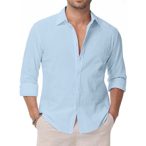 Per uomo Camicia Camicia Estiva Camicia casual Camicia da Spiaggia Camicia con Bottoni Blu Nero Bianco Verde chiaro Rosa Manica Lunga Tinta unica Bavero Casuale Quotidiano Bottoni Abbigliamento Moda
