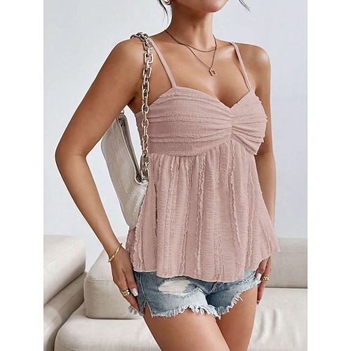 Per donna Canotta a canotta Tinta unica Quotidiano Elegante Casual Senza Maniche Spallina Top Regolari Quotidiano Uscire Abbigliamento da vacanza Arricciato Bianco Rosa Fucsia Verde Estate Primavera