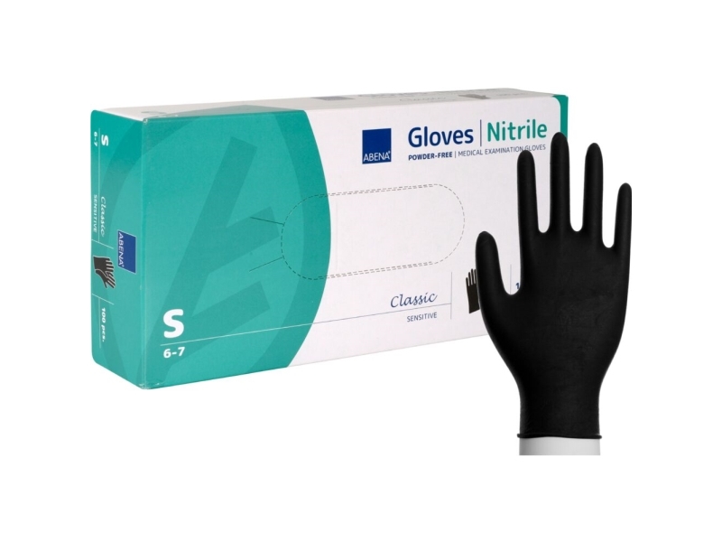 Untersuchungshandschuh, ABENA Classic Sensitive, S, schwarz, Nitril, puderfrei - (100 Stk.)