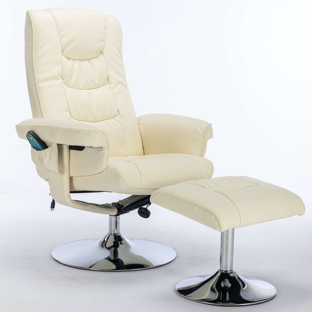 MODFU Massagesessel mit Ottomane Beige 79x79x106 cm verstellbar bis 135 Grad mit 5 Punkt Massage und Heizfunktion 360 Grad drehbar PU Bezug