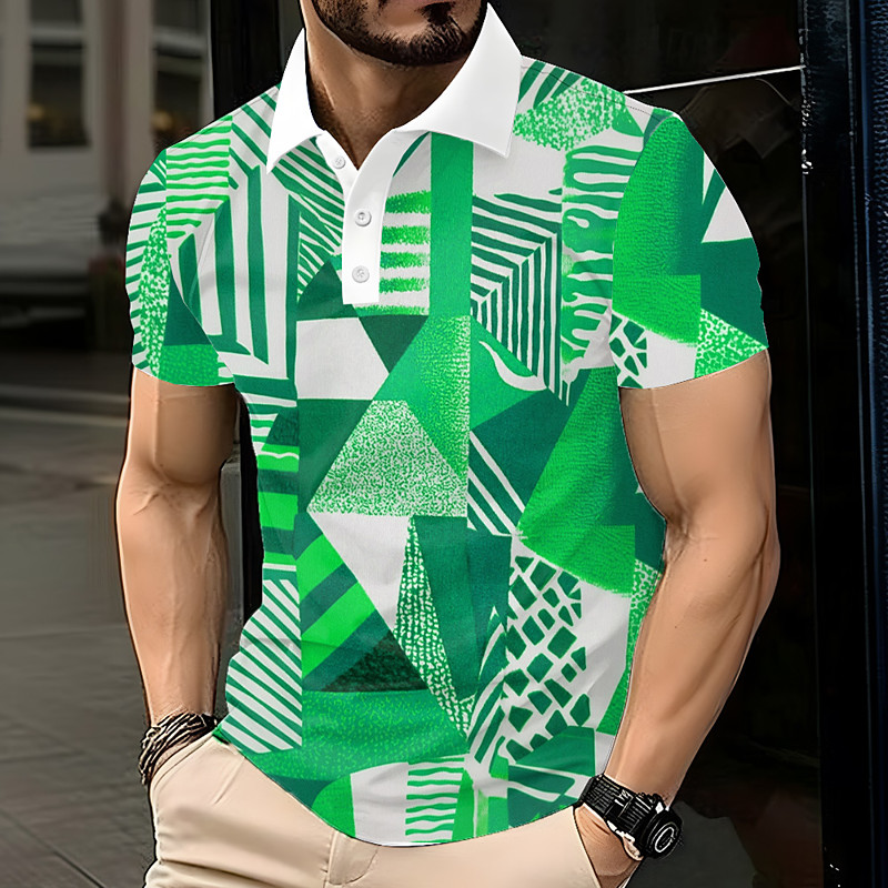 Men's Polo Casual Sports Turndown Short Sleeve Fashion Leisure Geometic Golf 3D Print Buttons Summer Violet Green Blue Polo