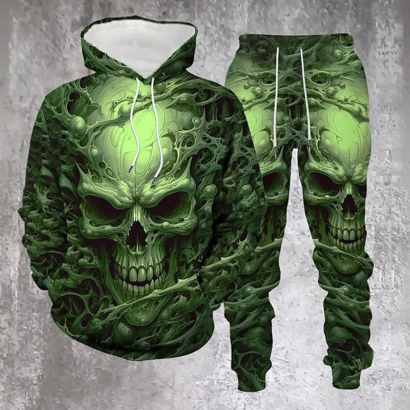 Halloween Men's Skulls 2pcs 3D Sweatshirt Sets Tracksuit Hoodie Sweatshirt Long Sleeve Long pants Hooded Casual Daily Street Athleisure 3D Print Spring Fall Winter Green