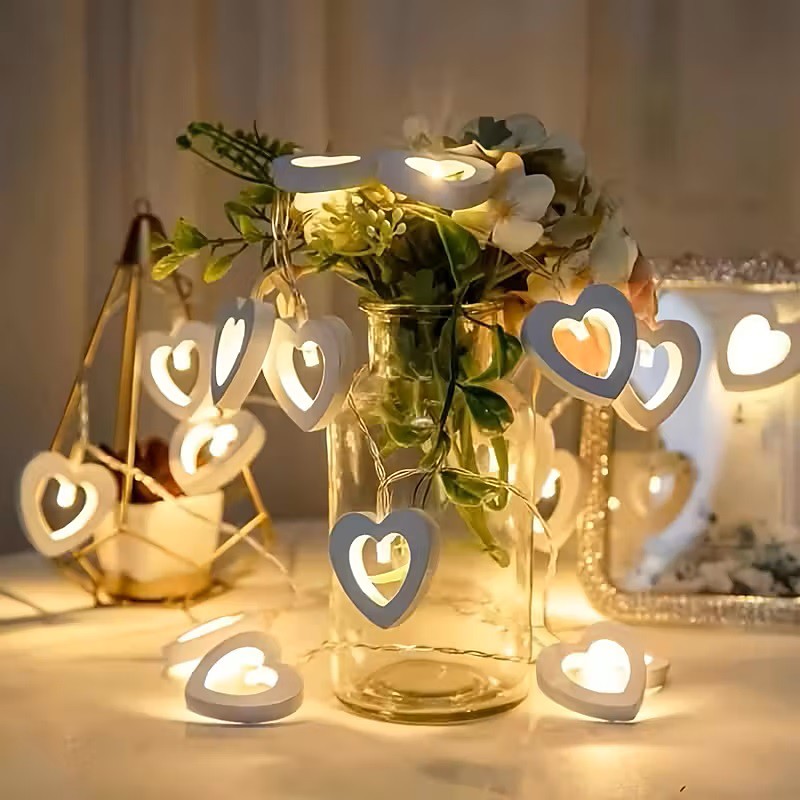 Red Wooden Heart Shaped Fairytale String Lights 10/20 LEDs Decor Lights for Wedding Confession Christmas Valentine's Day New Year Decoration Romantic Atmosphere Holiday Parties