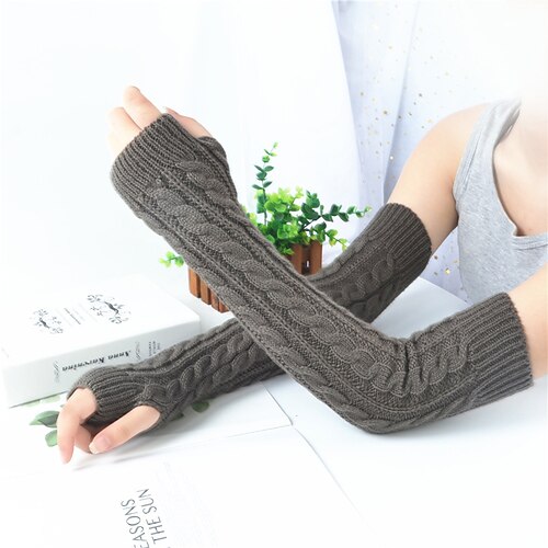 Lange Winter-Strickarmlinge für Damen, fingerlose Acrylhandschuhe, warme Strickmode ohne Finger für Herbst und Winter, lange Armwärmer