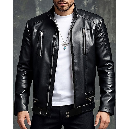 Per uomo Giacca di pelle sintetica Giacca da motociclista Giacca in pelle vintage Giacca da moto Giornaliero Da mare Antivento Tenere al caldo Tasche Autunno inverno Liscio Di tendenza Classico
