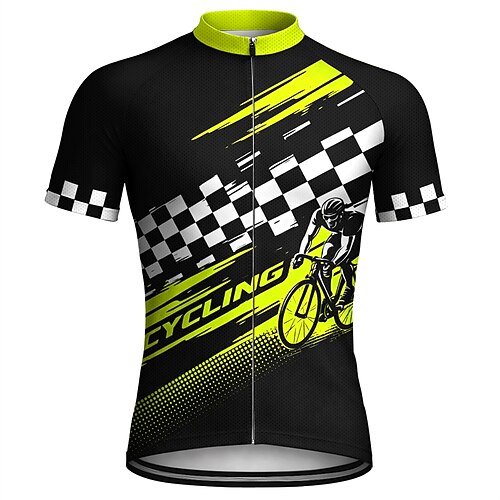 Da uomo Maglia da Ciclismo Maglia da downhill Geometrico Scacchiera Manica Corta Bicicletta Maglia Maglietta con 3 tasche posteriori Resistente ai Raggi UV Asciugatura Rapida Con tasche Cerniera