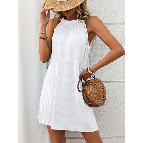 Per donna Mini Abito Abito Bianco Vestito Casual Abito con Collo Allacciato Elegante Moda Moderno All'aperto Vacanza Uscire Vestibilità comoda Semplice Senza Maniche All'americana Nero Bianco Verde