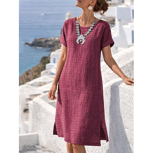 Per donna Abito Midi 100% cotone Abito a Tubino Vestito T-Shirt Moda Moderno Quotidiano All'aperto Ferie Vestibilità comoda Semplice Manica Corta Girocollo Verde militare Rosso Blu marino Estate