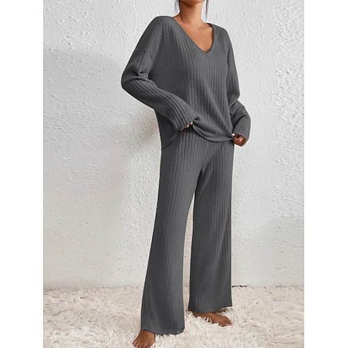 Per donna Set di Pantaloni Manica Lunga Scollo a V Tinta unica Moda Streetwear Casuale Quotidiano All'aperto Blu Nero Verde militare Primavera Vestibilità comoda