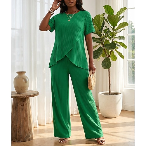 Per donna Maglietta Set di Pantaloni Bolero Top Manica Corta Girocollo Tinta unica Moda Streetwear Quotidiano All'aperto Vacanza Rosso Blu marino Verde Estate Vestibilità regolare Vestibilità comoda