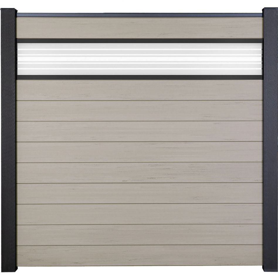GroJa Solid Steckzaun Sichtschutzzaun mit 30 cm ESG-Glas Designeinsatz Bi-Color Sand Sichtschutz Steckzaun Lamellenzaun