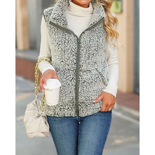 Per uomo Gilet imbottito Quotidiano Casual Autunno Inverno Tasca con cerniera Poliestere Confortevole Semplice Cerniera Collo alla coreana Vestibilità regolare Nero Borgogna Cachi Blu scuro Gilet