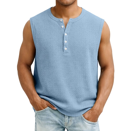 Da uomo Canotta a nido d'ape Canotta Gilet Canottiera Senza Maniche Henley Estate Semplice Moda Gilet Classico Bottoni Casuale Quotidiano Casa Verde chiaro Grigio chiaro Blu scuro Maglietta Top per