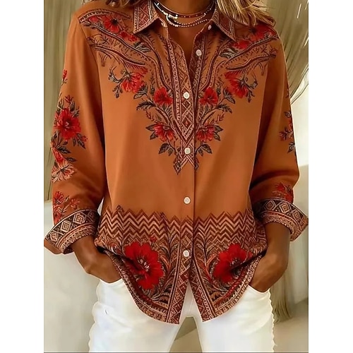 Per donna Camicia Camicia button-down Camicia casual Blusa Bottoni Floreale Grafico Elegante Classico Moderno Manica Lunga Colletto a Camicia Top Regolari Quotidiano Ferie Uscire Marrone Estate