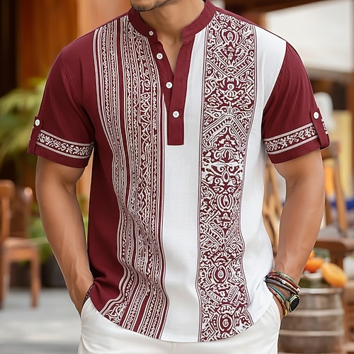 Per uomo Geometrico Etnico Floreale intricato Camicia Camicia button-down Maglia Henley Manica Corta Vintage Retrò Ferie Casual Quotidiano Estate Primavera Colletto Mao Colletto Henley Stampa 3D