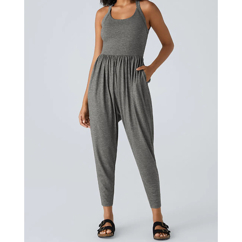 Women's Normal Jumpsuit Active Solid Color Sleeveless Wide Leg V Neck Pleated Daily Vacation Loose Fit Black Pink Army Green Summer