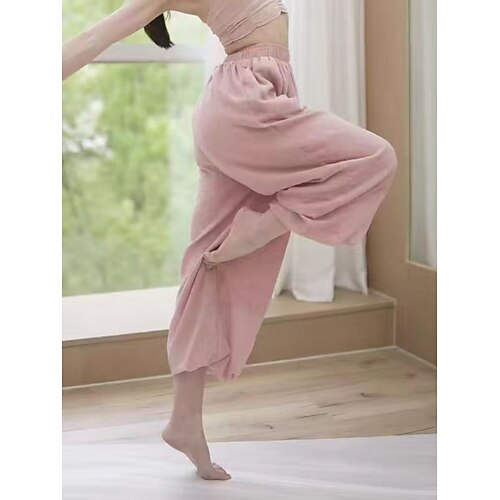 Damen Hose aus Baumwollleinen Weites Bein Chinos Urlaub Mode Streetwear Volle Länge Hohe Taille Einfach Tasche Elastischer Bund Bequem Komfort Weich Dehnbar Outdoor Straße Sport im Freien Blau Wei