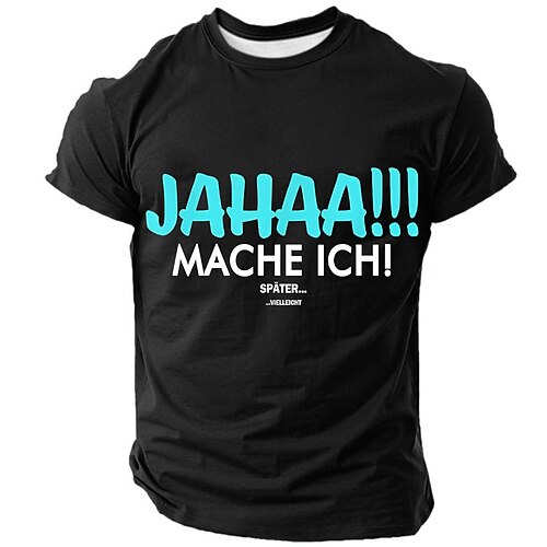 Herren Lustiger Slang Deutsch T Shirt Kurzarm T-Shirt 3D-Druck Rundhalsausschnitt Hemd Mode Täglich Straße Täglich Schwarz Rote Blau Sommer Frühling Bekleidung S M L XL XXL XXXL