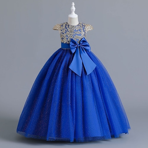 Blumenmädchenkleid Mädchen Formelle Kleidung Hochzeitskleidung Party Hochzeit Formell Elegant Mode Schön Netz Einfarbig Ärmellos Rundhalsausschnitt Blau Rote Ab 4 Jahren